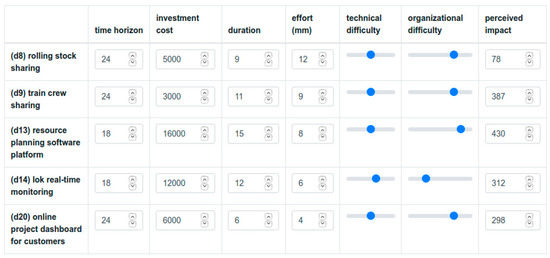Regarding output accuracy, the main output of the algorithm of the weighted improvement initiatives. To check that the initiative list is accurate, or “correct”, a “reference value” is needed. To obtain it, we set up informal conversational interviews with the general manager and two other key persons from the technical department, right after presenting them the initiative list. None of them were involved in completing steps 4–6 of the framework. The goal of the interviews was (a) to understand their desirability of implementing the proposed improvement initiatives and (b) to check if the computed weights were consistent with their perception of how the initiatives should be prioritized. The findings were as follows. Regarding issue (a), each initiative was considered particularly important for increasing the agility capabilities of the company. Regarding issue (b), the general manager ranked initiative (d13) as #2, (d14) as #7, (d9) as #8, (d20) as #15, and (d8) as #19. The two key persons from the technical departments ranked (d13) as #2 and #1, (d14) as #9 and #7, (d9) as #8 and #8, (d20) as #15 and #13, and (d8) as #19 and #11. The ranks are close enough to the scores calculated by the algorithm. We, therefore, consider the output accuracy level to be satisfactory.