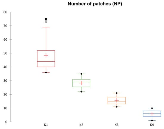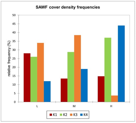 - K4—a small number of N2K patches, which also have the lowest density, interspersed in natural matrices with a high SWF density but low environmental heterogeneity.