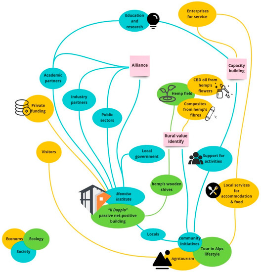 The students from Politecnico di Torino designed a systemic map of the Ostana community; scholars from the Eidgenössische Technische Hochschule Zurich prototyped a systemic cycle for the community; a PhD candidate from the Oslo School of Architecture and Design designed a master plan that demonstrates sustainable construction and is embedded in the local ecological and cultural landscape. Moreover, other industrial and public partners, such as the Viso a Viso, Casa Salute, and Castelatsch, provided technical, managerial, and financial support to build the capacity of Ostana’s ecosystem services. Cooperation and dialogue among partners further facilitated the community’s capacity by encouraging a multi-form learning process.