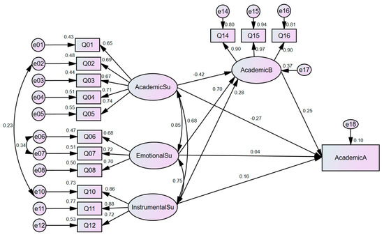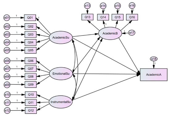 AcademicSu = academic support; EmotionalSu = emotional support; InstrumentalSu = instrumental support; AcademicB = academic buoyancy; AcademicA = academic achievement.