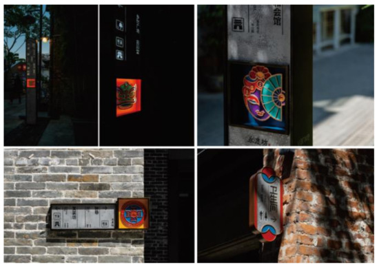 For instance, in Shizuoka, Japan, the plastic model industry’s center, Aoi Neon, incorporated columns and benches into plastic model parts, as well as designed giant frames. In this way, the plastic models became more interactive and accessible to everyone. It conveys a sense of fun, as well as being useful. With the guidance system, the city’s attractiveness is spread throughout the world (see Figure 3). Furthermore, the recent transformation of China’s urban landscape serves as a reference point for the environmental graphic design of rural cultural tourism. A century-old street in Liwan, Guangzhou, converted from Xiguan Old Street, is one of the first intangible cultural heritage districts in Guangzhou, Yongqingfang. It combines the thousand-year culture of Guangdong with the historical style of Lingnan. The full-bodied shrimp dumplings, the characteristic opera voice, the flashing eyes of the lion, and the soft waves of Lychee Bay are integrated and designed as decorative elements embedded in the environmental graphic installation, bringing the faded cultural memory of the area back to life and clarity (see Figure 4). Due to the extension of urban space concepts, these ideas are also applicable to the brand presentation of rural cultural tourism spaces.