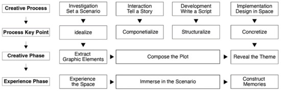Based on the value generated by economic activities, Pine and Gilmore (2011) [38] proposed the experience economy model. They divided the value generated by economic activities into four categories: goods, commodities, services, and experiences. Building on this model, creative workers divided the process of transforming texts into products into the following four steps: (1) setting the scene; (2) telling a story; (3) writing a script; (4) and designing a product or thing [32,39,40,41]. Based on the literature review and above methodological research, the research framework of this paper was formed (see Figure 6).