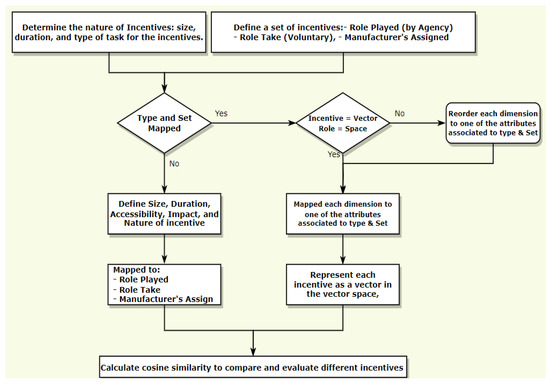 The circumstances associated with the flow of the incentivization technique require a set of incentives to be defined and grouped by the roles played, role-taking, and assigned task, as adopted from the vector space technique presented. From Algorithm 1 below: let S be the set of incentives offered, which are grouped by role played, role-taking, and assigned task. The research represents: