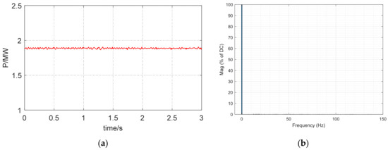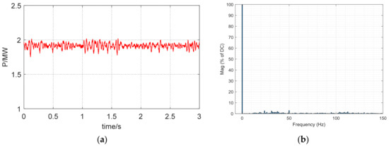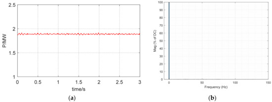 At steady state, the active power output of the VSC is 1.9 MW. The FFT analysis results of the active power at the PCC are shown in Figure 21, which indicates that the system has no oscillatory components. The key control parameters of VSC are given in Table 3.