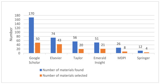 In the first stage of this research, the Google Scholar, Elsevier, Taylor, Emerald Insight, MDPI, and Springer databases were explored to find the necessary information. The search was carried out following the keywords “Risk”, “Risk-based thinking”, “Risk management”, and “Integrated Management Systems” between July 2022 and January 2023, and the number of references identified is shown in Figure 1.