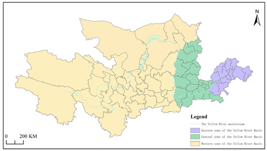The Yellow River is the second largest river in China. It flows through nine provinces/autonomous regions, including Henan, Shanxi, Inner Mongolia, Shandong, Shaanxi, Gansu, Qinghai, Ningxia, and Sichuan; spans three major geographic units and three economic terraces in China; and connects developed coastal regions with the central regions undergoing revitalization and the western regions that have great potential [11]. The Yellow River Basin (YRB) is characterized by complex and diverse topography (high topography in the western regions but low in the eastern regions), major climatic differences, and uneven population distribution. Under the combined influence of various factors, large regional differences exist with regard to the health levels of residents in the YRB [12]. The per capita life expectancy of people living in Haixi Prefecture in the western region of the YRB is less than 72 years, whereas the per capita life expectancy of people living in Jinan City in the eastern region of the YRB exceeds 82 years. The YRB is currently facing the issue of how to improve its residents’ health while at the same time reducing health disparities. In the present study, 73 prefecture-level cities (leagues and prefectures) in the YRB were selected as the study object, taking into account the importance of regional socioeconomic development in the YRB. We tried our best to maintain the integrity of all administrative units. As the YRB straddles three major zones (the east, central, and west zones), to some extent it represents the projection of China’s regional development in the YRB. Therefore, the YRB was also divided into three regions (the east, central, and west zones) in the present study, corresponding to the way our country is divided into east, central, and west regions (Figure 1).