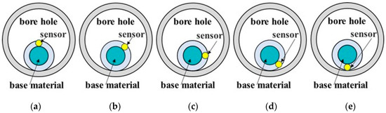The monitoring results of the experiments were different when the selected surface-mounted fiber grating sensor and substrate material were in different positions to monitor the stress changes. In order to investigate the effect of the sensor located in different positions of the substrate material on the monitoring results, the typical angle was selected to design five groups of experiments of fiber grating deflection, 0°, 45°, 90°, 135°, and 180°, which were recorded as Groups A, B, C, D, and E, as shown in Figure 3.