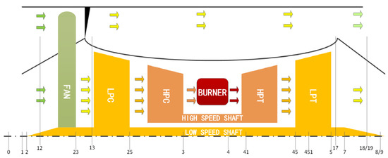 h is introduced to quantify the degree of sudden and gradual performance degeneration of each component after fault occurs. Since the inner ducted fan is driven by the same shaft with and the LPC, its function is equivalent to the first stage of the LPC. In the component-level model, the inner ducted fan and the low-pressure compressor are often modeled as one component, while the bypass fan is modeled as a separate component. Since all seven sensors involved in this paper are located in the inner duct of the engine, the health parameters of the outer bypass are not considered. In addition, the combustion chamber efficiency generally varies little during the engine service life, therefore it is also not considered. Finally, the health parameter