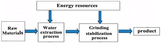 The goal was to simulate the environmental damage assessment of the actual plant in the fly ash recycling process, and the scope of this assessment included the water extraction process and the grinding stabilization process, as shown in Figure 1.