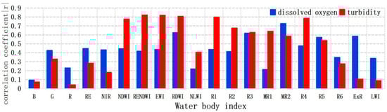 We here analyzed the correlation between the constructed water body index and the water-quality parameters (such as dissolved oxygen and turbidity), and obtained the correlation coefficient value