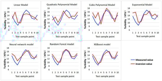 (2) The main characteristics of traditional regression, neural network, random forest and XGBoost are discussed in detail through experimental comparison and analysis. This article mainly conducts a comprehensive comparative analysis of the above models from multiple perspectives, such as parameter quantity, processing speed, algorithm rigor, solution accuracy, robustness, generalization, and hardware requirements. The experimental results indicate that the machine learning algorithms outperform the traditional statistical regression model in terms of inversion accuracy. Among the machine learning algorithms, the random forest method and XGBoost algorithm show high level of accuracy and robustness for predicting water quality parameters.