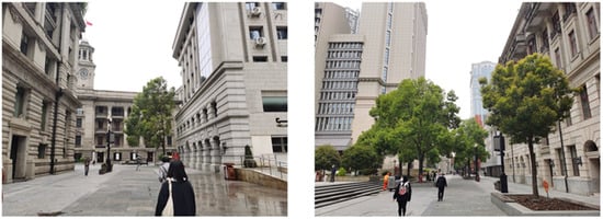 We take into account the sample’s representativeness and variability and choose the urban street space of the historic district of Jianghan Road and Zhongshan Avenue in Wuhan as the study area (Figure 4). The historic district of Jianghan Road and Zhongshan Avenue is located in the Jiang’an District of Wuhan, which is a famous historical and cultural district of Wuhan. It has two important historical roads, Jianghan Road and Zhongshan Avenue, as its backbone. The study area runs through the central part of Hankou and is characterised by a regular grid pattern, with a continuous and varied street interface, which basically maintains the ‘street + street outline’ character of the modern city of Hankou and is representative of the typical neighbourhood form of Wuhan.