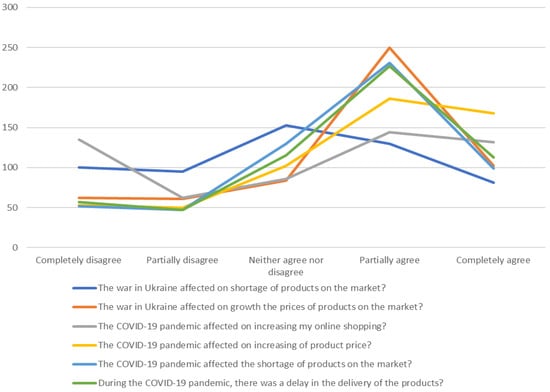 “Psychological considerations include understanding of needs or circumstances, capacity of a person to absorb or interpret knowledge, as well as the person’s mood. This is when a consumer reacts to the marketing adversity available around him or her based on personal impressions about specific goods or services” []. Among the psychological factors, perception is extremely important, while other psychological factors are motives and motivation, learning, personality traits, memory, and knowledge. It is necessary to mention pandemics, wars, natural disasters, social networks, and media as psychological influences that are always associated with similar or the same consumer behavior patterns over time. “Emotional marketing comes from the emotional needs of consumers; it can induce an emotional resonance in consumers and integrate emotions into marketing. In the era of emotional consumption, consumers not only care about the quantity, quality and price of products, but also need emotional satisfaction and psychological identification when shopping” [].