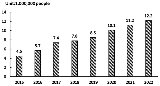 Employment is fundamental to ensuring the development of people’s well-being, and entrepreneurship is the driving force for sustainable economic development. Starting a business in rural areas not only generates employment opportunities for farmers and increases their incomes [1,2] but also helps to alleviate income inequality and poverty in rural areas [3,4,5], to promote the sustained, inclusive and sustainable development of rural areas and to create favorable conditions for the realization of the 2030 Agenda for Sustainable Development. As one of the countries containing the largest number of farmers in the world, China attaches great importance to entrepreneurship in rural areas. In 2015, the “mass entrepreneurship and innovation” initiative was included in China’s annual Report on the Work of the Government. In June of the same year, the State Council of China issued the “Opinions on Supporting Migrant Workers and Other Personnel to Return to Their Hometowns for Entrepreneurship to Start Businesses,” which aims at supporting migrant workers, college students and other personnel in returning to their hometowns to start businesses. Due to their familiarity with rural areas and their network advantages in their hometowns, migrant workers who have accumulated the necessary funds and experience for entrepreneurship have quickly become the main force behind rural entrepreneurship, and their numbers are constantly increasing. In 2015, there were 4.5 million people in China who started businesses in rural areas, but by 2022, the number of entrepreneurs in rural areas has reached 12.2 million, showing an average annual growth of 15.32% (Figure 1), of which 70% are returned migrant workers (In this paper, the term migrant workers refers to a social group that has been working in the city (within China) for many years or for most of their time, but whose household registration is still in the countryside. Returned migrant workers mainly refer to migrant workers who return to those rural areas, counties or townships where their hometowns are located to work and live there on a permanent basis.). According to the calculations of the Ministry of Agriculture and Rural Affairs of China, on average, rural entrepreneurship projects can engage 6.3 farmers in stable employment, drive 17.3 farmers into flexible employment, and create new growth points both for increasing rural employment and promoting rural economic development. However, compared to China’s more than 500 million farmers, the portion of migrant workers who return to their hometowns to start businesses is still small. At the same time, due to the limitations of capital accumulation and business capacity, the entrepreneurial scale of returned migrant workers is relatively small, which is mainly reflected in the fact that returned migrant workers often only open a single enterprise, the scale of investment is small, and the ability to drive local employment and economic development still needs further improvement. The best way to stimulate the entrepreneurial enthusiasm of returned migrant workers and to expand both the scale of entrepreneurial investment and the number of enterprises set up by returned migrant workers to promote the comprehensive development of the rural economy and society has become a research theme of great theoretical and practical significance under the goal of achieving the 2030 Agenda for Sustainable Development.