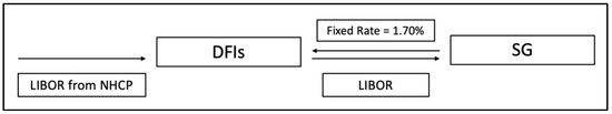 The financial structure also includes an interest rate swap. The swap exchanges interest rate cash flows between the DFIs and Societé Géneral (SG). The DFIs receive a floating rate payment from the NHPC; they then pass on the floating rate to SG, which pays them a fixed rate in return (see Figure 3). Based on 20 years of year-end 12-month LIBOR from 1998 to 2018, we calculated the fixed rate for the swap to be 1.7% [40]. According to the PAD, the swap(s) represent a loan equivalent exposure (LEQ) to the NHPC of up to US$10 million, meaning this was the expected positive average mark–to–market value of the swap.