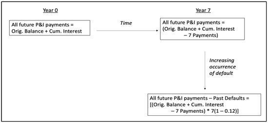 Options of this type could also be used to offer additional protection for the banks, especially if interest rates were not adjustable, as they were for NHP [42]. If interest rates were fixed for the entire 21-year term, but the banks found themselves in a rising interest rate environment, it is possible they could decide that the original interest rate is no longer competitive with forward-looking lending rates. Under this case, banks could choose to abandon the loan under the option agreement and lend the money at a higher rate (this problem was addressed for NHCP by including a rate adjustment at year 7 and 14 to market rates [42]. Both of these possibilities—default and changing interest rates—were assessed. The prices of these options were calculated using binomial option models [43,44,45,46]. In both cases, two option values were calculated, once for the first option that expires in year seven and again for the second option that expires in year 14. This exercise was undertaken, not to suggest a market value for the options, but rather to demonstrate the theoretical value and incentive to the banks, from this aspect of the financial structure.
