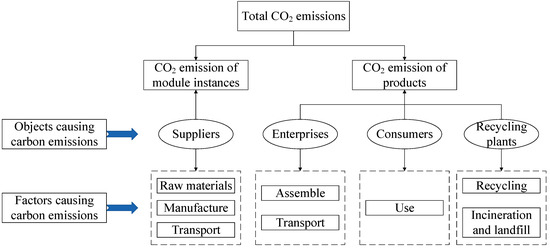 In the process of product configuration, different module instances of the same module have different manufacturing materials, processing times, and weights, which can lead to different carbon emissions in the production and processing of module instances. In other words, the combination of different module instances makes the total carbon emissions of the product variant different. In addition, product variants with different configuration schemes produce different carbon emissions due to different customer usage habits and recycling plant recycling methods. Therefore, different product configuration schemes can affect the carbon emissions of product variants throughout the life cycle.