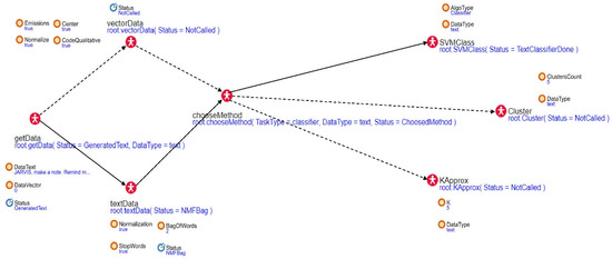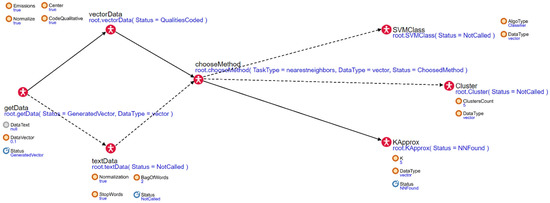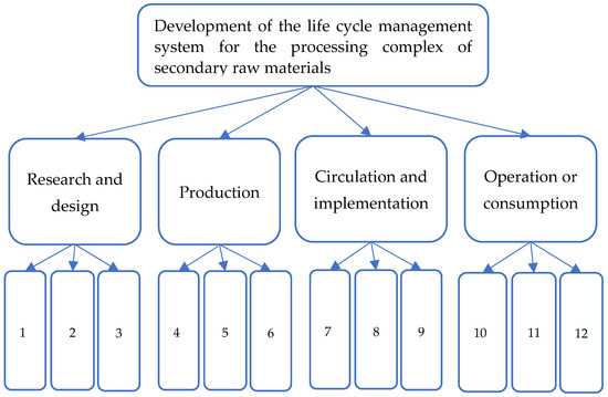 The composition and hierarchy of the goals of the program were formed on the basis of the development of a tree of goals [44]. Each level has its own structure of goals, which are subgoals relative to the global goal of the program, corresponding to the topmost level. The global goal of the program is as follows: “Create an environmentally oriented system of approaches to the design, production, and processing of goods aimed at preserving the useful qualities of the materials by closing the life cycles of goods. The industrial symbiosis network structure is used to link industrial enterprises, organizations, institutions, and the residents of a particular territory, assuming a paradigm shift in the creation and use of goods in a particular territory based on applying robotics, artificial intelligence, the Internet of Things, 3D printing, cloud computing, Big Data and 5G technology”.