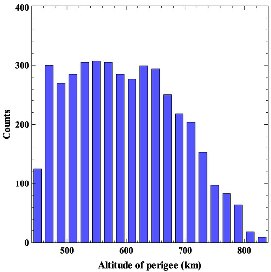 Perigee distribution of space debris.