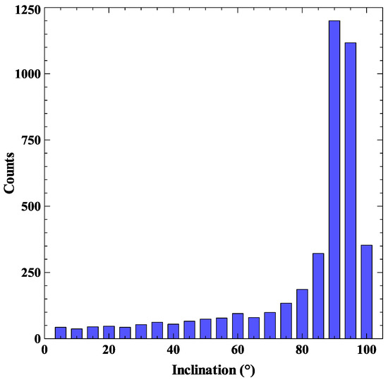 Inclination distribution of space debris.