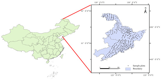 Geographical location and distribution of sample plots in the Three Northeast Provinces.