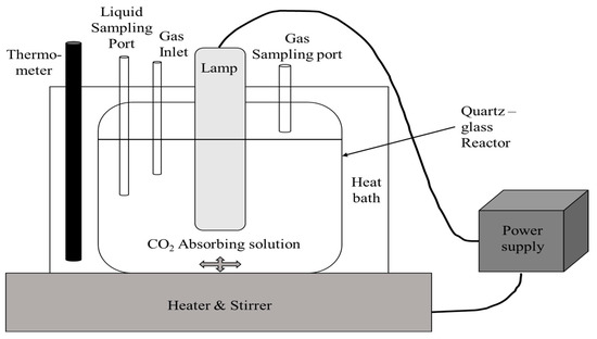 The photocatalytic reduction of CO2 to methanol was performed in a closed glass-quartz reactor of 330 mL capacity volume. The experimental setup was equipped with a gas inlet, outlet, gas sampling port, and a liquid sampling port (Figure 1).