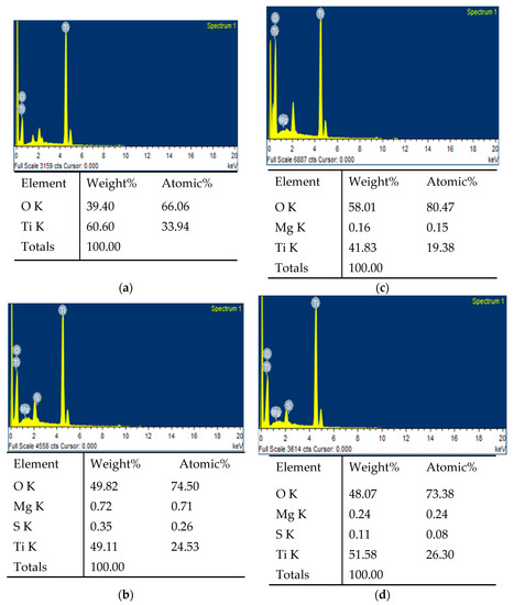 - Behnajady, M.A.; Alizade, B.; Modirshahla, N. Synthesis of Mg-Doped TiO2 Nanoparticles under Different Conditions and its Photocatalytic Activity. Photochem. Photobiol. 2011, 87, 1308–1314. [Google Scholar] [CrossRef]