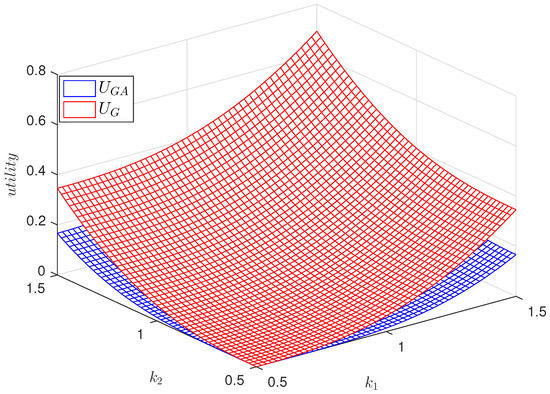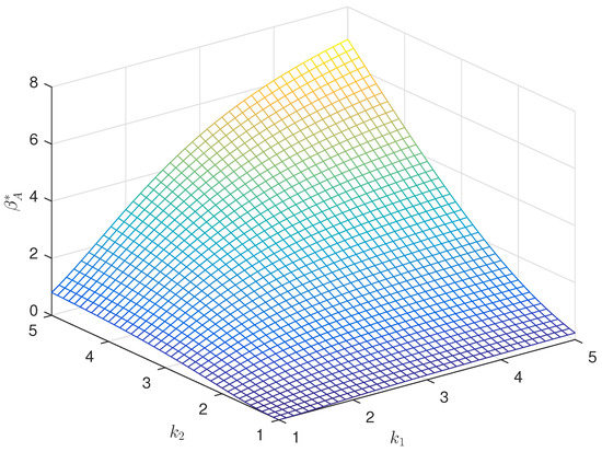 where represents the fixed salary and signifies the incentive awarded to the manager. We assume that the agent’s effort cost function is quadratic, symbolized by , where c is the cost factor [4,28]. The smaller the value of c, the better the manager is considered. When agent A performs better on the two conflicting tasks, the expected income will be higher, and agent A will also benefit more.