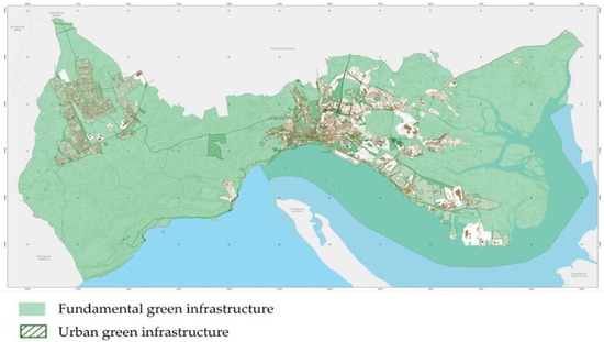 Green infrastructure of Setúbal (fundamental and urban) (source: Ferreira et al. [80]).