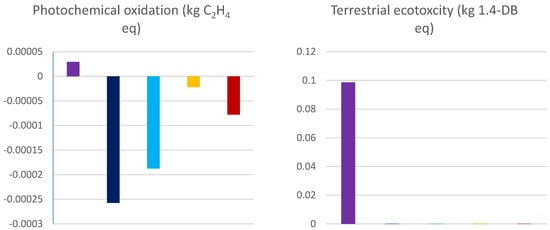 The landfill scenario had a negative impact on all ten impacts category studies. This is because material is disposed of, and no value is extracted out of it. The landfill scenario had the worst impacts on abiotic depletion of fossil fuel, eutrophication, human toxicity, ozone layer depletion, photochemical oxidation, and terrestrial ecotoxicity. Although the immediate environmental impact of landfill is on collection and transportation, long-term impacts include contamination of ground water through discharging of harmful additives when plastic is degraded [58]. Leachate is considered one of the major problems associated with landfills that impact the environment. Leachate is a toxic liquid formed when rainwater percolates through the waste, through aqueous fluids present in the waste, and through biochemical processes occurring in the landfill waste [59]. The problem with leachate is that it can leak into ground water and contaminate it, which poses a significant health problem to the community [60].