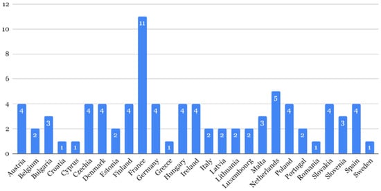 The research was designed to include a majority of policymakers, as this contributes to the current gap in the literature on policy barriers. Both European and national policymakers were included to reflect the barriers that exist at both policy levels. France was chosen as a case study as it is the Member State with the highest agricultural emissions [54]. The country has set a target to reduce these emissions by 24% by 2030 compared to 1990 levels and has adopted a national certification scheme for emissions reductions in agriculture (‘Label Bas Carbone’). The desk research also revealed that France is the Member State with the highest number of carbon farming policies. Secondly, Ireland is the EU Member State with the highest share of agricultural emissions in its total GHG emissions [54]. The Irish government aims to reduce agricultural emissions by 25% by 2030, compared to 2018 emissions. Ireland has adopted an average number of carbon farming policies (4), yet both the Irish NECP and the strategy for mitigation in agriculture (Ag Climatise) mention the challenge of balancing the multiple objectives of the agricultural sector.