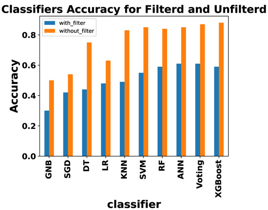 Classifiers’ Overall Accuracy on filtered and unfiltered data.