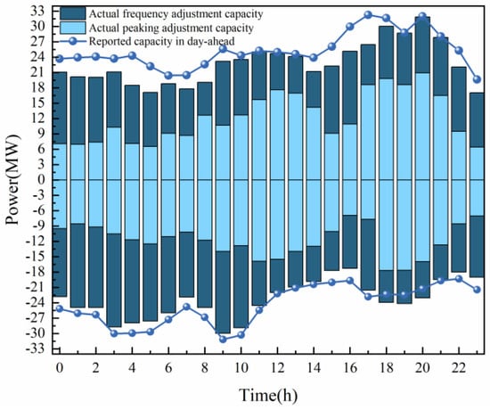 As a necessary means of guaranteeing safe operation and ensuring the quality of power supply, the auxiliary service market has become a significant development trend in the power market. In recent years, China’s peak regulation auxiliary service and frequency regulation auxiliary service markets accounted for about 90% of the total market. Therefore, many scholars have researched the optimal scheduling of participating auxiliary services. In [24], a two-stage scheduling model for the scenery–fire hybrid system was established and introduced to the auxiliary service market for coordination and optimization. In [25], a control strategy was proposed for coordinated participation in the grid frequency auxiliary services using cement plant start–stop control and energy storage. In [26], a tunable robust cooperative optimization model was developed for the joint dispatch of energy and frequency auxiliary services considering the nature of stochastic wind power generation. Although all of the literature mentioned above have analyzed the optimal scheduling of the auxiliary service market, the regulation intervals proposed in the current study are limited to a single time scale, ignoring the impact of resource uncertainty. Furthermore, when managing the aggregation of a large number of loads with distinct performance differences, they only consider the load power characteristics, ignoring the requirements of different auxiliary service markets for load performance.