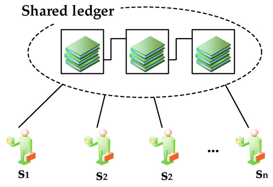 The essence of blockchain is a particular distributed database, where the data schema is globally unified and stored in each participating node as a copy. Data loss of a single node does not affect the whole system, as shown in Figure 2. The characteristics of blockchain technology also make it apply to supply chain management to improve traceability.