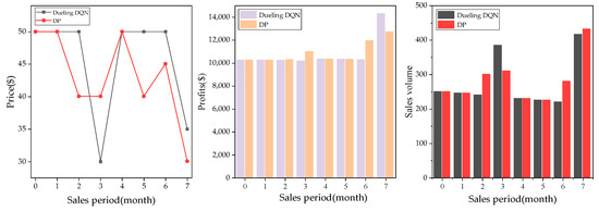 We improve the sophistication of the simulation environment model and introduce the time variance of consumer demand. According to the price reference effect and the amount of time left in the sales period, consumer demand fluctuates continually throughout time, which is more in line with reality. The experiment also includes a variety of market settings to corroborate the developed model’s universal applicability. The results illustrate that the Dueling DQN algorithm remains valid and capable of learning excellent strategies. It has generalizability and can be applied to more realistic environments.