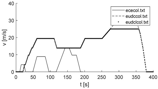 ECECOL, EUDCCOL, EUDCLCOL travel cycle speed waveforms.