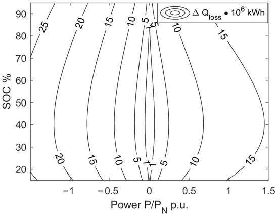 where —state of charge, —capacity loss, —energy throughput, —state of health, —electric power expended from the battery, —sampling period (1 s).