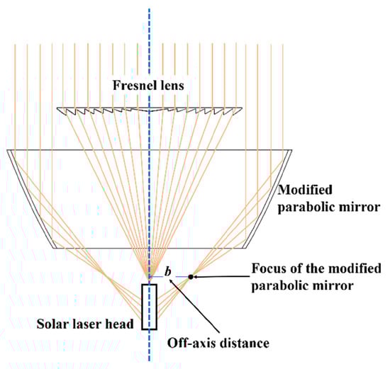- Cai, Z.; Zhao, C.; Zhao, Z.; Yao, X.; Zhang, H.; Zhang, Z. Highly Efficient Solar Laser Pumping Using a Solar Concentrator Combining a Fresnel Lens and Modified Parabolic Mirror. Energies 2022, 15, 1792. [Google Scholar] [CrossRef]
