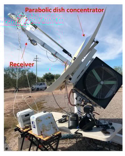 - Cisneros-Cárdenas, N.A.; Cabanillas-López, R.; Pérez-Enciso, R.; Martínez-Rodríguez, G.; García-Gutiérrez, R.; Pérez-Rábago, C.; Calleja-Valdez, R.; Riveros-Rosas, D. Study of the Radiation Flux Distribution in a Parabolic Dish Concentrator. Energies 2021, 14, 7053. [Google Scholar] [CrossRef]