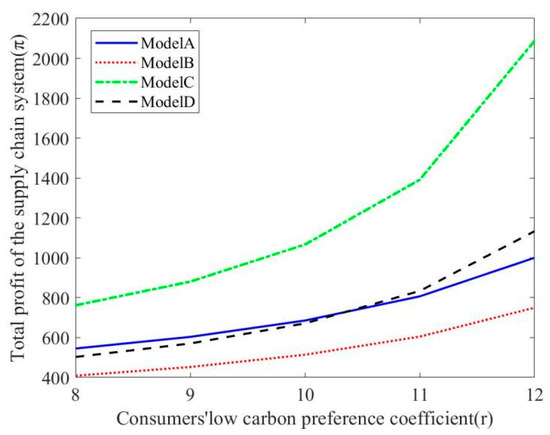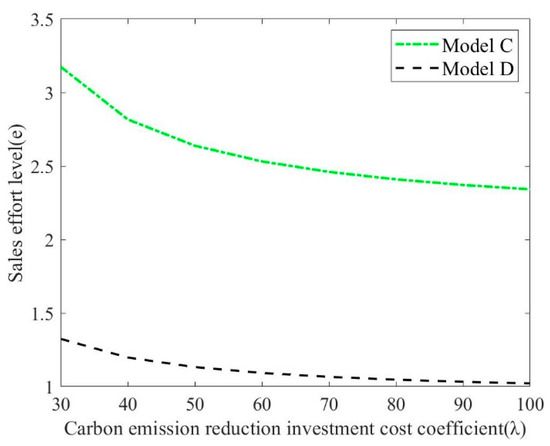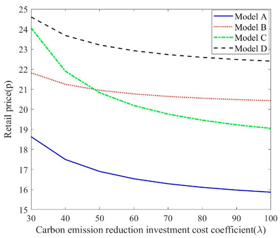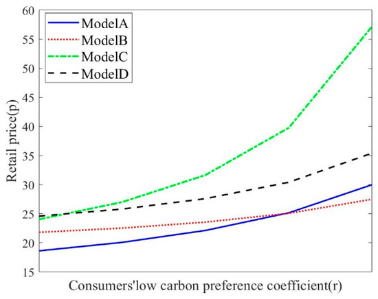 Retailers should adopt more marketing methods and channels than ordinary products to make consumers know and understand LCP. When retailers invest in sales efforts, the cost of sales will increase due to the increase in investment. Therefore, retailers will increase the retail market price to ensure profits. Meanwhile, as consumers’ recognition of LCP increases, manufacturers will take more measures to increase the investment in CER technology to meet the expansion of market demand, and the unit CER of products will also rise. With the increase in market demand and retail price, the overall profit of the L-CSC system will improve accordingly.