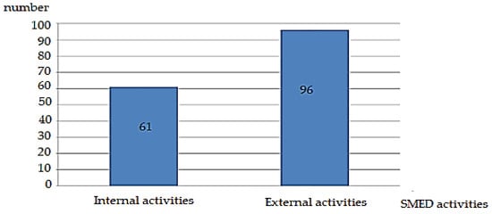 The number of internal and external activities performed during the changeover before implementing the SMED method. Source: own study.