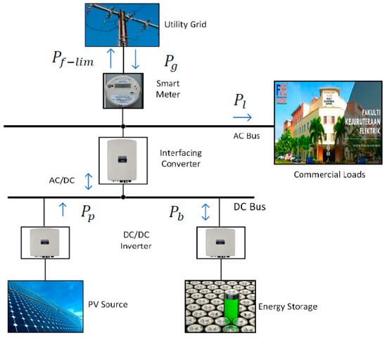 The increased demand for electricity has led to reduced fossil fuel resources and increased CO2 emissions. The mitigation of global warming through the use of grid-connected solar photovoltaic (PV) and battery energy storage systems (BES) has recieved outstanding attention. However, the application of CO2 reduction to the demand side has not received much attention from researchers and policymakers despite buildings being responsible for a large amount of greenhouse gas emissions (e.g., more than 78% of generated electricity resources come from the combustion of fossil fuels in Malaysia). As a result, Malaysia is ranked 26th among the world’s top 35 greenhouse gas emitters, and Malaysia’s CO2 emissions have increased by 221% [1]. Malaysia’s installed solar energy capacity in the last ten years is roughly 1.8 GW [2]. Malaysia has begun to prioritize clean energy, with the goal of reaching a capacity mix of 20–25% renewables by 2025 in order to minimize greenhouse gas emissions and diversify its power fuel mix [3,4]. In May 2020, Malaysia announced a fourth round of contenders for a large-scale solar PV of 1 GW to encourage solar energy integration, particularly from local market actors [5]. In order to improve the self-consumption of PV, the available PV power is first used to supply the load; if there is excess PV power, it can be sold to the grid as long as it is under the maximum PV export power limitation, which is stated by Malaysian energy commission guidelines [6]. RERs (renewable energy resources) are intermittent due to their nature. This problem is considered stochastic, and batteries can be used to overcome this problem. When PV generation is high compared to load demand, excess PV power is locally stored using BES and can be used to supply the load during peak periods [7,8,9,10]. For most commercial buildings that are built in city/urban areas where outer space is limited, the primary concern is the determination of the optimal capacity of PV-BES systems, considering their available rooftop space and the need to obtain maximum PV power output. Therefore, this study investigates optimal sizing to incentivize building owners to install PV and battery systems, which can contribute to reducing greenhouse gas emissions.