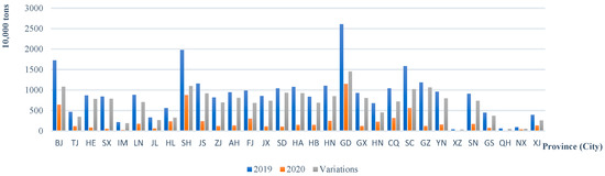 The four provinces of Inner Mongolia, Jilin, Qinghai, and Ningxia have relatively lower reductions in carbon emissions and carbon sequestration in the tourism industry. The reduction in carbon emissions in the tourism industry in Inner Mongolia, Qinghai, and Ningxia is below 2 million tons. Among them, the reduction in carbon emissions in the tourism industry in Qinghai and Ningxia is around 500,000 tons. In 2020, the number of confirmed COVID-19 cases in Ningxia and Qinghai was less than one hundred, and the impact of the pandemic on people’s regular travel was relatively small. However, their tourism revenue experienced a significant decline of 50%. Therefore, for the effective ecological compensation amount in their tourism sector, the reduction in carbon emissions in their tourism industry in 2020 is used, and the calculation is adjusted using the coefficient representing the extent of damage caused by the COVID-19 pandemic on the tourism industry.