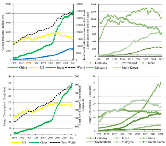 On the one hand, the rapid growth of China’s energy consumption and carbon emissions are due to sustained economic growth and industrialization process. China’s rapid development over the past few decades has led to increasing energy demand, especially in the manufacturing sector. This has led to the use of large amounts of coal, oil, and natural gas, which, in turn, has generated large amounts of carbon dioxide emissions. On the other hand, China’s energy consumption structure is relatively unreasonable, the proportion of clean energy is low, and traditional coal still dominates, so the carbon dioxide emissions are high.