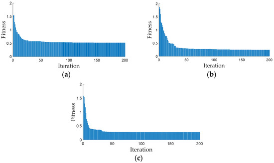 Fitness function results: (a) scene 1; (b) scene 2; and (c) scene 3.