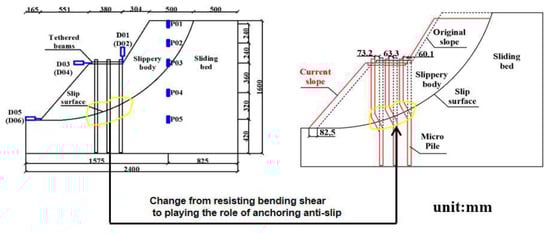 - Yan, J.; Liu, X.; Zhang, Z.; Jin, K.; Lu, X. Model Test of Micro-Pile Group Reinforcing High Steep Landslide. Appl. Sci. 2022, 12, 10017. [Google Scholar] [CrossRef]