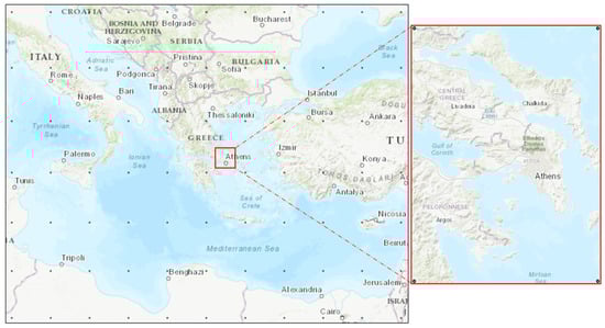 The undertaken research is focused on the geographical region of Attica in Greece, which encompasses the entire Athens Metropolitan area, the country’s capital and largest city. Attica is a highly crowded, built-up region that lacks open spaces and green areas and covers about 3808 km2. The permanent population increased to 3.8 million inhabitants in 2011, with a density of 1250 inhabitants/km2, while more than 95% are inhabitants of the Athens metropolitan area (Hellenic Statistical Authority; https://www.statistics.gr/statistics/pop (accessed on 1 February 2023)). In addition, the Attica region is a triangular peninsula jutting into the Aegean Sea and is watered by the gulfs of the Aegean Sea. In the center of the peninsula, there is a large basin where the entire metroplex of Athens–Piraeus has been constructed. This basin is surrounded by four mountains: Hymettus, Parnitha (the highest mountain of Attica), Egaleo and Penteli (Figure S1), providing significant amounts of green. According to the Hellenic National Meteorological Service (HNMS), Attica is one of the warmest regions in Greece, with mean monthly temperatures and precipitation heights ranging from 8.8 °C to 28.3 °C and from 1.6 mm to 12.5 mm, respectively (http://www.emy.gr/emy/en/climatology/climatology (accessed on 2 February 2023)).