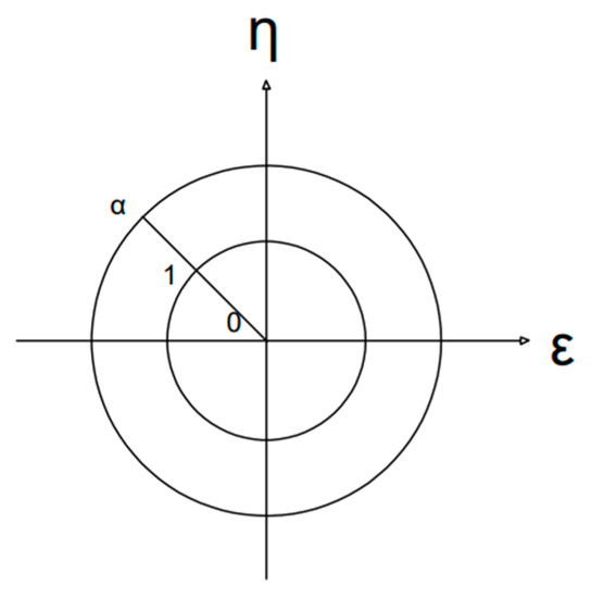 In Figure 1, r represents the radius of the calculated tunnel and h represents the height of the center point of the tunnel from the groundwater level. In Figure 2, the inner circle |δ| = 1 is the unit circle, and the outer circle |δ| = α is the mapped region with the expression The radius α is a parameter related to and , and the corresponding relationship is: