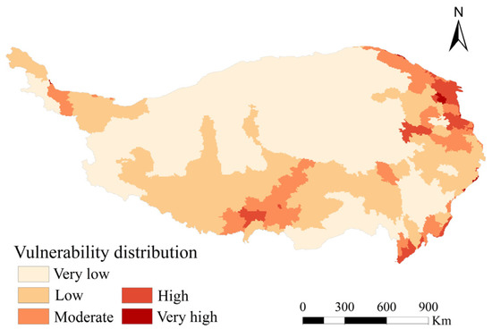 The zoning map of snow disaster vulnerability in the Tibetan Plateau.