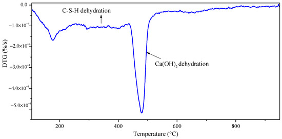 Thermogravimetric (TG) analysis was used to quantify the hydration products in the recycled cement paste powder. The sample preparation process was similar to that of XRD, with a fineness below 315 μm. The tested sample mass was 20 mg. The device used was a NETCHI STA 449C synchronous thermal analyzer, provided by Netchi Corporation. The temperature increased from room temperature to 1000 °C at a rate of 20 °C/min.